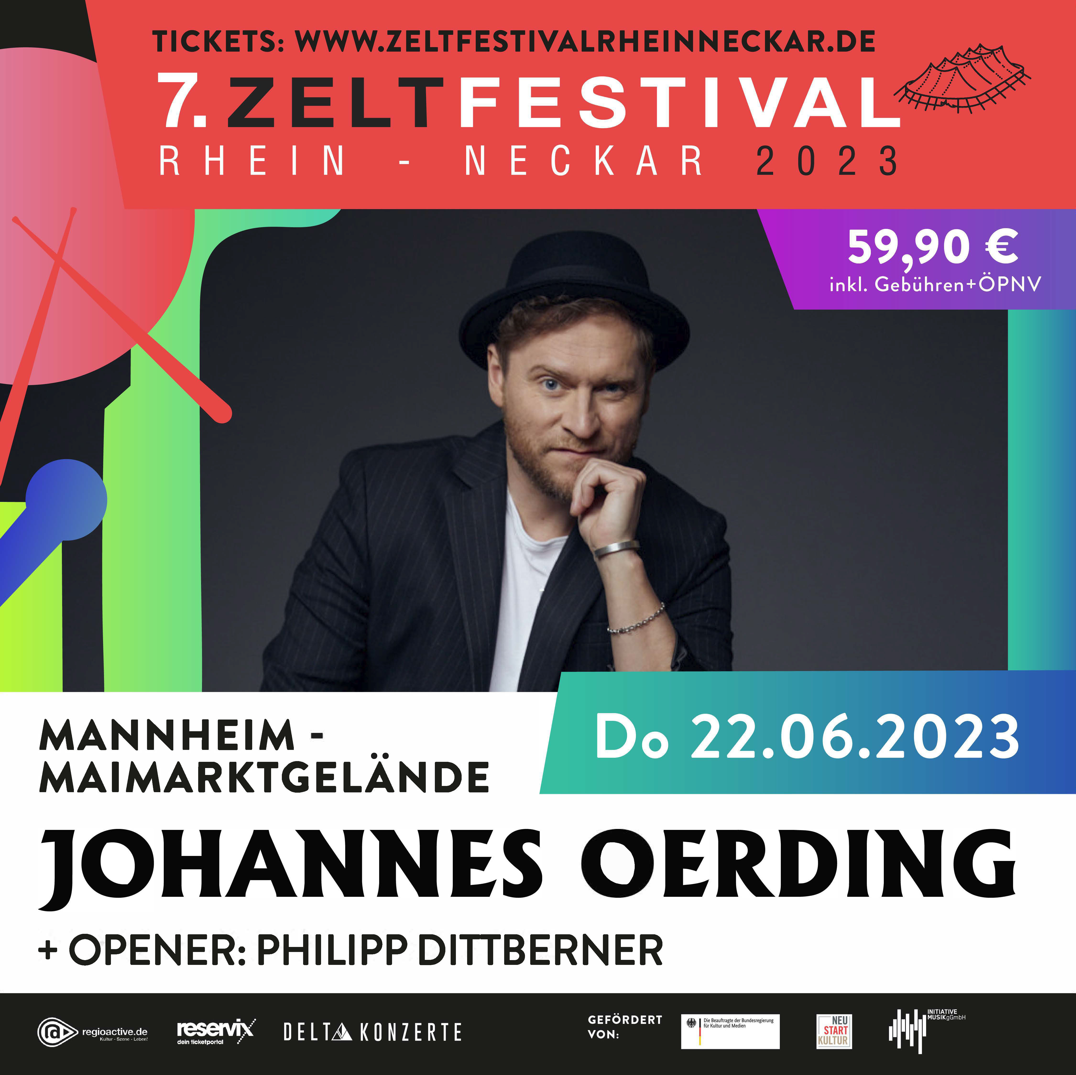 Gold- und platinveredelte Studioalben, ausverkaufte Arena-Tourneen und beliebter TV- Host bei „Sing Meinen Song“ und „The Voice Of Germany“: Sänger und Songwriter Johannes Oerding hat sich endgültig in der Liga der deutschen Superstars etabliert! Sein aktuelles und siebtes Album „Plan A“ erklimmt innerhalb von wenigen Tagen die Spitze der deutschen Charts und sichert sich den ersten Platz. Nach zwei Jahren pandemiebedingt eingeschränkter Aktivität brennt Johannes Oerding mehr denn je darauf, mit seiner Band auf die Bühne zurückzukehren! Da er aufgrund seiner riesigen Popularität die größten Hallen des Landes benötigt, um möglichst vielen seiner Fans die Chance auf auf das langersehnte Wiedersehen zu ermöglichen, startet er von März bis April 2023 eine Arena-Tournee durch 17 Städte! Doch das ist nicht alles: Selbstverständlich gibt der Popsänger auch im Sommer Vollgas und spielt von Juni bis September 2023 die Open Air-Bühnen der Republik. Neben bereits angekündigten Terminen sind hier Konzerte in Mannheim, Lingen, Aurich, Northeim, Bielefeld und Elspe frisch bestätigt. Das absolute Highlight folgt dann Mitte September: Nachdem Johannes Oerding 2020 den Stadtpark 15 Mal in Folge ausverkauft hat, kehrt der Wahl-Hamburger Anfang September 2023 zurück in sein grünes Wohnzimmer und spielt dort unglaubliche 3 Konzerte!In seiner über 20 Jahre umfassenden Karriere hat Johannes Oerding bewiesen, dass der unerschütterliche Glauben an den eigenen Weg und das unermüdliche Dranbleiben auch im Zeitalter der teils turbobeschleunigten Laufbahnen sich immer noch auszahlen: Seine bisher veröffentlichten sieben Alben erscheinen verlässlich im Zwei-Jahres-Takt und charteten allesamt: Das Debut „Erste Wahl“ (2009) auf Platz 39, sein Nachfolger „Boxer“ (2011) auf Platz 11, „Für Immer Ab Jetzt“ (2013) erklomm Platz 4, „Alles Brennt“ (2015) Platz 3, „Kreise“ (2017) Platz 2 und „Konturen“ (2019) und „Plan A“ (2022) schließlich den wohlverdienten Platz 1 der deutschen Albumcharts. Gleichzeitig werden erst die Clubs und später auch die Hallen, Arenen und Open Airs immer größer, um der immensen Nachfrage seiner stetig wachsenden Fanschar gerecht zu werden. Bemerkenswert ist dabei, dass es Johannes Oerding selbst in den größten Arenen gelingt, allen Anwesenden das Gefühl zu vermitteln, er sänge nur für jede einzelne Person im Publikum.