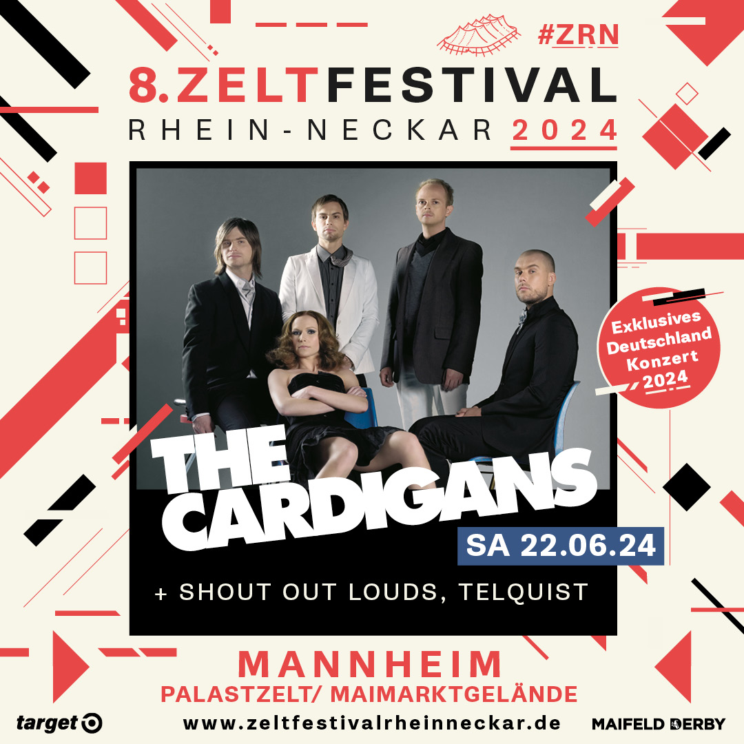 Am Sa, 22.6.2024 holen wir THE CARDIGANS für ein exklusives Deutschland Konzert (ihr erstes seit 18 Jahren!!!) zur Maifeld Derby Ehrenrunde ins Palastzelt auf dem Maimarktgelände. Drei Wochen nach dem 13. Maifeld Derby (31.5- 2.6.2024) gönnen wir uns diese Herzensband zusammen mit SHOUT OUT LOUDS und TELQUIST. Wir machen aus diesem besonderen Anlass ein Mini-Festival. Love Fool und Favourite Game laufen schon jetzt im Zeltfestival-Büro in Dauerschleife und wir können kaum erwarten, sie live zu erleben. Unvergessene Hits und Nina Persson’s Stimme zum Dahinschmelzen. Das wird sehr besonders!